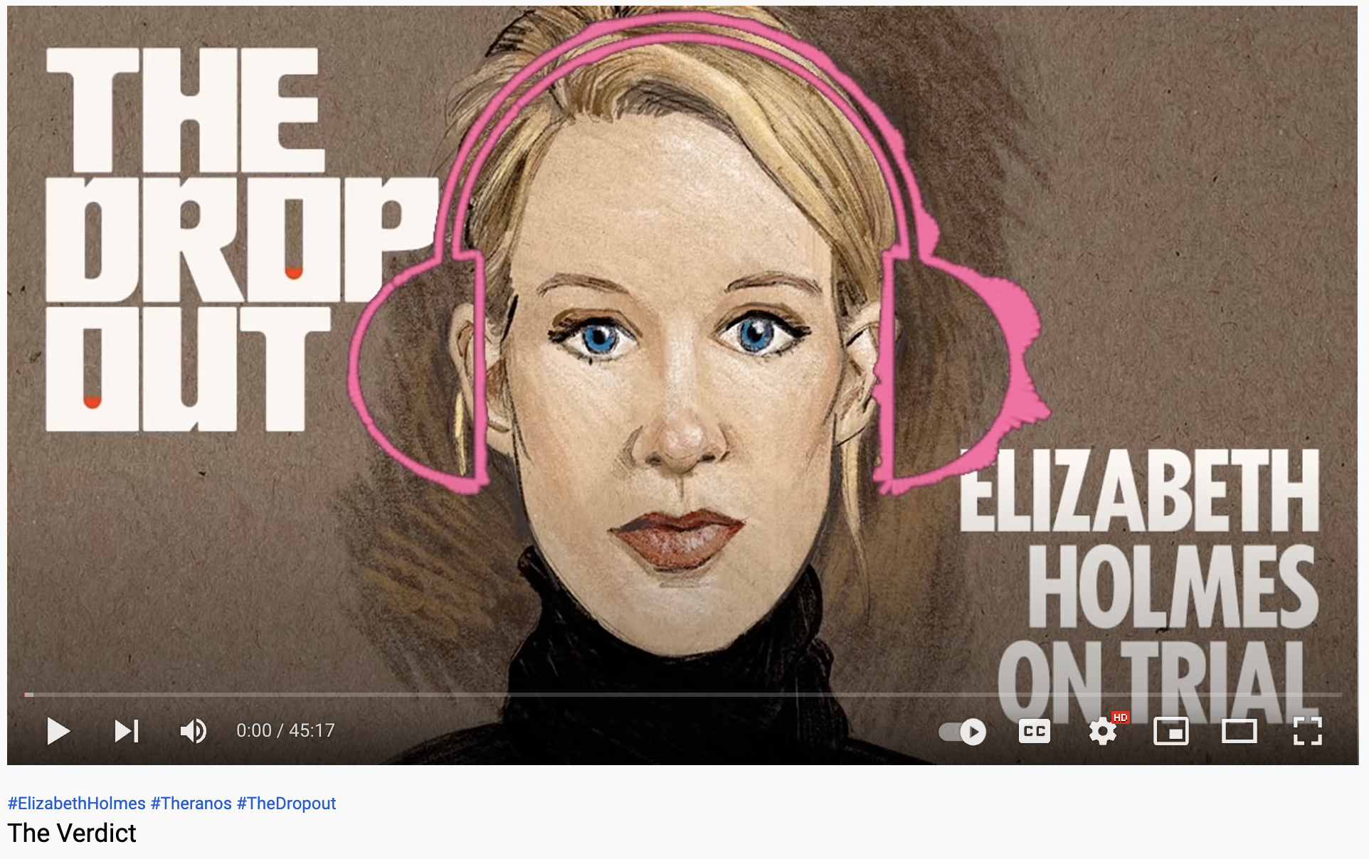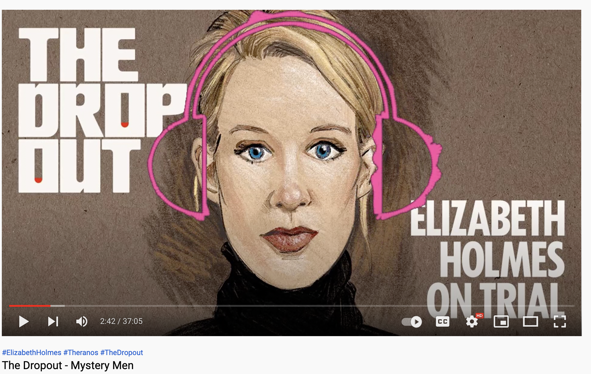 From start to finish: Miles cohen talks about the Elizabeth Holmes trial on ABC's Nightline ; Miles Cohen talks about a mysterious encounter at the Elizabeth Holmes trial on ABC's The Dropout; Short doc Mudlarker: A longtime school bus driver finds purpose in retirement while searching for treasure on a radioactive beach; Miles Cohen talks about the feeling in the courtroom when Elizabeth Holmes was convicted on ABC's The Dropout; A photo of Elizabeth Holmes shot by Miles Cohen; Miles Cohen talks about Elizabeth Holmes' seven days on the stand on ABC's The Dropout; Miles Cohen talks about General James Mattis' testimony in the Elizabeth Holmes trial on ABC's The Dropout, and a photo of Mattis by Miles Cohen